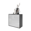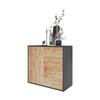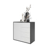 Technické údaje: CAMILLE - Skříň s dvířky a 4 zásuvkami s otevíráním na stisknutí - Antracit / Beton H74cm Š80cm D36cm
