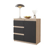 MIKEL - Komoda se 3 šuplíky a 1 dveřmi - Skříň na oblečení do ložnice - Sonoma dub / beton - Výška 75 cm, šířka 80 cm, hloubka 35 cm.